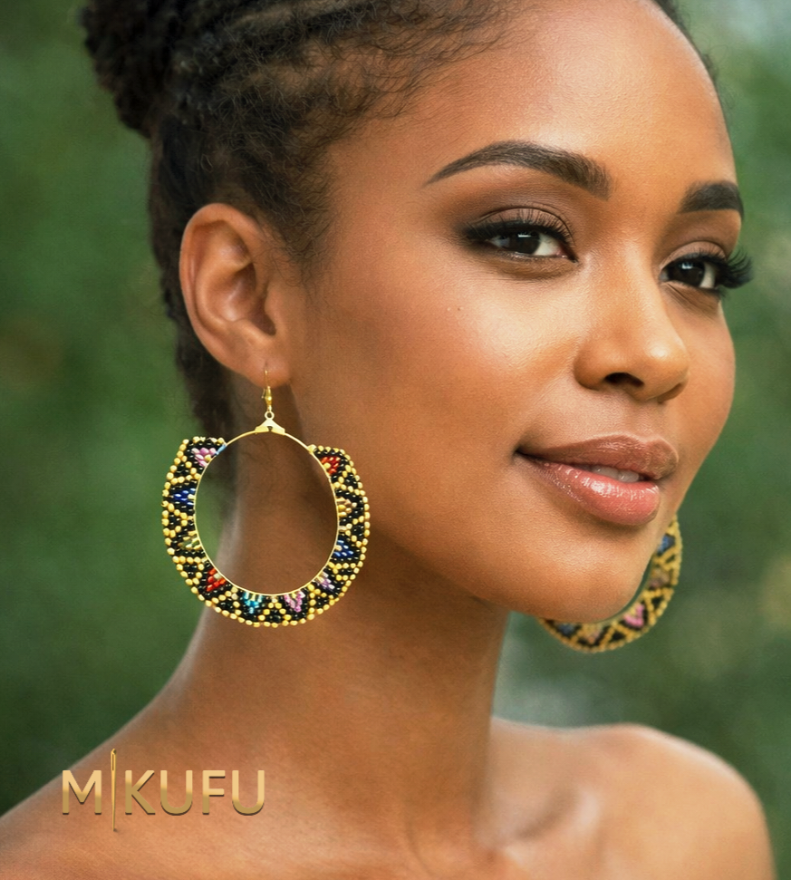EARRINGS MADE OF BEADS IN A GOLDEN FRAME