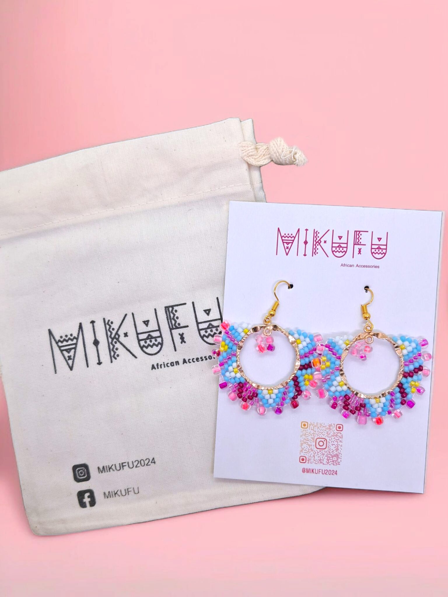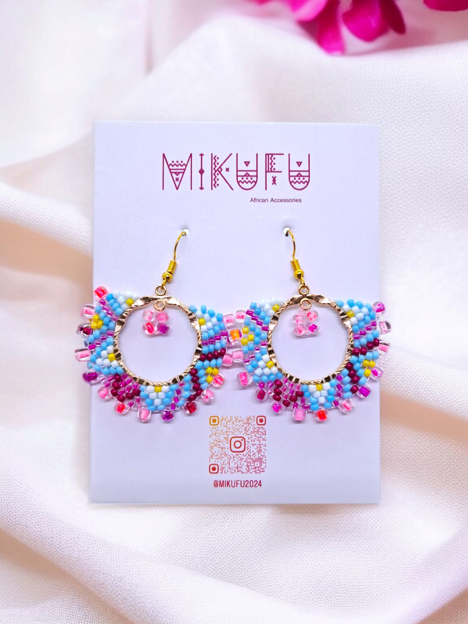 EARRINGS MADE OF BEADS IN A GOLDEN FRAME