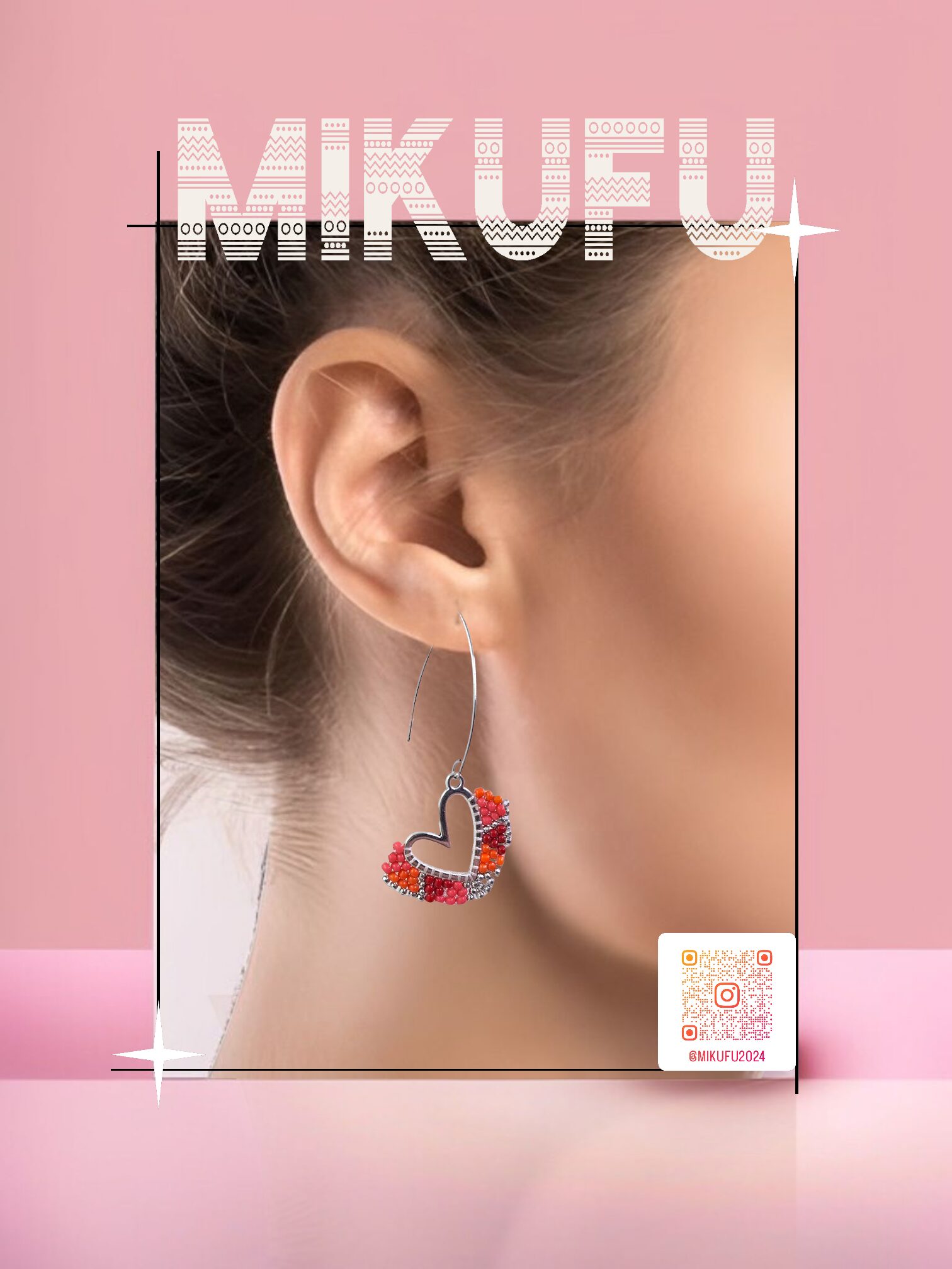 HEART BEADED EARRINGS IN A SILVER FRAME